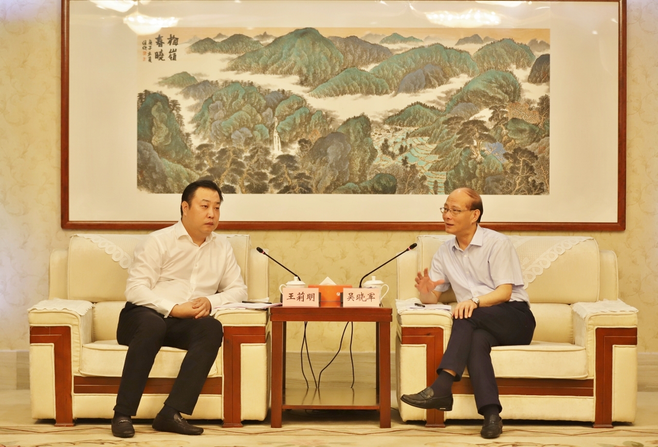 吳曉軍書記對王莉明董事長的到訪表示熱烈歡迎,對中能建集團長期以來關注和支持南昌市經濟社會發展表示感謝。吳曉軍指出,南昌是一座“四色”之城:“紅色南昌”被譽為英雄城,是中國人民解放軍的誕生地、中國改革開放的策源地;“古色南昌”人文薈萃,擁有南昌漢代海昏侯國遺址公園、滕王閣、繩金塔、八大山人等特色文化名片;“綠色南昌”攬山入城、生態優美,擁有“一江三河串十湖”的發達水系;“金色南昌”發展勢頭良好、前景看好,電子信息、航空制造、中醫藥、機電裝備制造等主導產業不斷做大做強。吳曉軍表示,南昌作為中部地區重要城市,堅持改革、開放、創新的發展理念,近年來保持了穩健快速的發展態勢。南昌流淌著紅色基因,2018年經習近平總書記、中央軍委批準,軍委訓練管理部軍體中心與南昌市政府開展“八一南昌”合作共建,軍體中心所屬37支專業運動隊全部冠名“八一南昌”參加國內外體育賽事,是重大的軍民融合項目。歡迎中能建集團發揮其所有優勢,參與南昌國際軍體城的投資建設,并在航空運輸、機場運營、航空培訓、人工智能、大數據產業等領域與南昌市開展深入合作,為南昌市經濟發展增添新動力。
