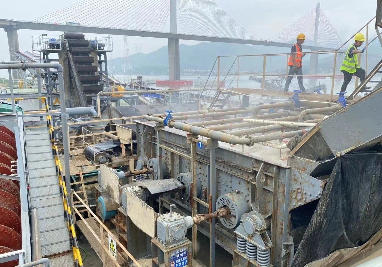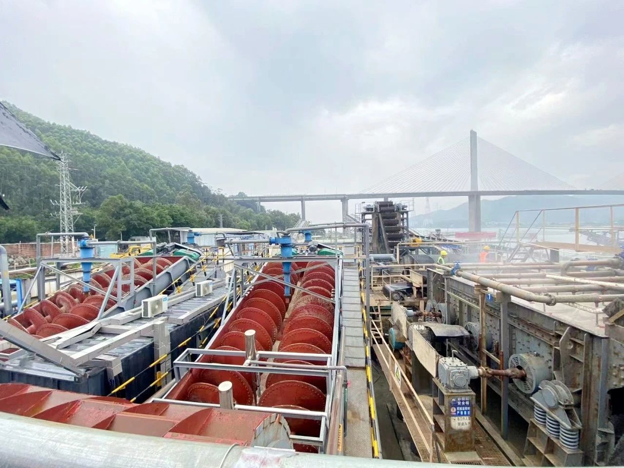 該海砂淡化零排放生產的核心設備及工藝由華建公司與相關研究院所共同研發。海砂淡化生產線采用電化學催化、物理分散和淡水清洗高度相結合的純物理工作原理,可針對海砂表面及晶裂內部氯鹽有害物質進行分散置換,該系統有效保障了產品質量;廢水回用零排放系統采用“預處理系統+鹽水淡化系統+濃水脫鹽蒸發系統”工藝,能夠達到生產流程專業環保要求和生產過程水資源的零污染和有害物的零排放。目前,經淡化的海砂產品已銷往香港、澳門、廣州、深圳、珠海等地,品質得到客戶和市場的認可。